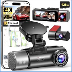 4K+2K+2K 3 Channel Dash Cam Front and Rear, 128GB Card Included, Dash Camera for Cars 5.8G/2.4G Dual Wifi, Built-in GPS$80Rosemead, CA
