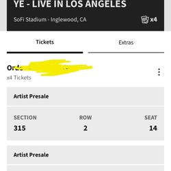 Kanye tickets (Retail) SOFI YE$375Fullerton, CA