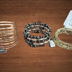 BUNDLE OF 3 WRAPAROUND BRACELETS 2 gold tone 1 black.$40Santa Ana, CA