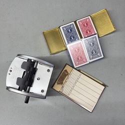 Vintage binary arts card shuffler plus bridge score tablet with pencil plus 4 decks cards$30Irwindale, CA