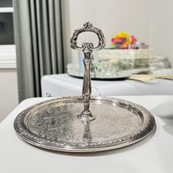 Vintage Silver Plated Serving Tray with Ornate Handle – Silver on Copper Round Dessert / Tea Tray$35Pomona, CA