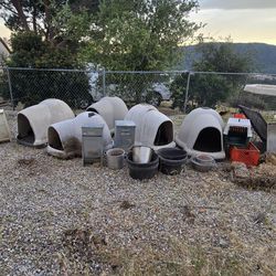 Dog igloo houses, automatic dog feeders, and cage (small kennels)$0Arrowhed Farm, CA