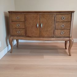 French-style armoire or entertainment cabinet featuring intricate woodwork decorative panels, a rich wood finish, and multiple storage drawers.$250Grand Terrace, CA