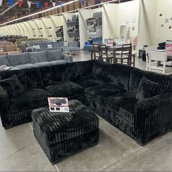 BRAND NEW BLACK THICK FLUFFY CORDUROY SECTIONAL SOFA COUCH WITH OTTOMAN $550Moreno Valley, CA