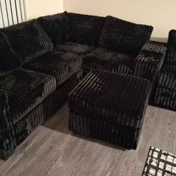 BLACK FUR LIKE CORDUROY SECTIONAL WITH OTTOMAN $580Corona, CA