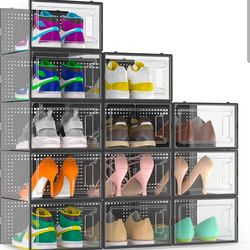 Secret Space 12 Pack Large Blavk Shoe Organizer Storage Boxes for Closet, Modular Space Saving Shoe Boxes Clear Plastic Stackable$25San Bernardino, CA