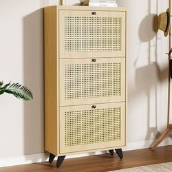 Shoe Cabinet with 3 Flip Drawers Adjustable Shelves Slim Natural Rattan Wood Freestanding Narrow Shoe Rack Storage Organizer for Entryway, Oak$100Rancho Cucamonga, CA