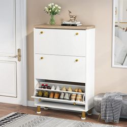 Tribesigns 3 Drawer Shoe Cabinet, Freestanding Shoe Rack Storage Organizer with Flip Door, Modern Tipping Bucket Shoe Cabinet for Entryway, Hallway, B$70Upland, CA