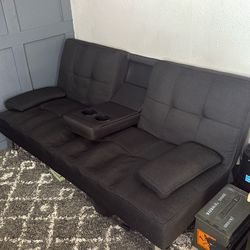 Black Futon Couch Bed w/ Cupholders$80Rialto, CA