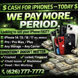 17 Pro max 17 Pro macbook Pro iPad air 16 Pro max iphone Buyer Cash For Iphones $1West Covina, CA