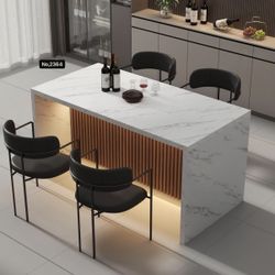 63" Large Imitation Marble Dining Table ,Kitchen Island Table with LED Lights, Mordern Marble Stripes Kitchen Dining Table with Grille design for Dini$165El Monte, CA