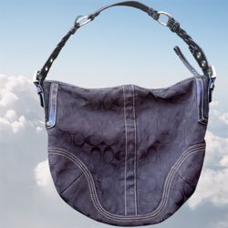 COACH signature Y2K trim/leather Shoulder Bag Handbag Hobo Black Signature 2005$185Corona, CA