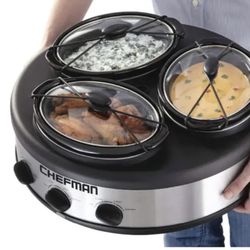 Chefman RJ15-15-TO Oval Crock Round Triple Slow Cooker with Individual Heat Control & Lid-Lock Straps, Stainless Steel, 3 x 1.5 quart by Chefman$40Los Angeles, CA