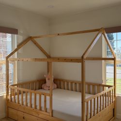 Coco Village Solid Wood House Bed w/ Storage Drawer + Mattress – Great Condition$360Arcadia, CA