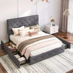 Queen Fabric Platform Bed with 4 Big Storage Drawers, Diamond Tufted Adjustable Headboard$210Ontario, CA