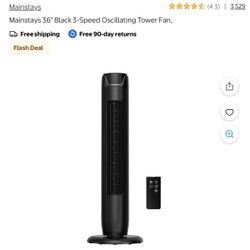 36" Black 3-Speed Oscillating Tower Fan,$35Montclair, CA