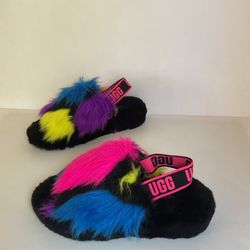 UGG Fluff Yeah Multicolor Fur Slide Slippers Black Pink Logo Strap Women’s Sz 9$50Ontario, CA