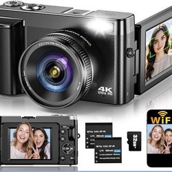 4K Digital Camera for Photography Autofocus, Upgraded 64MP WiFi Vlogging Camera for YouTube with 3" 180° Flip Screen, 16X Zoom, Compact Travel Cameras$30Diamond Bar, CA