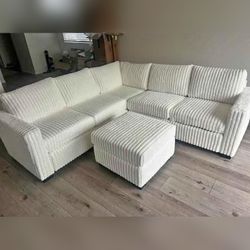 New Ivory Sectional Sofa And Ottoman, Sectional Couch, Sofa, L-Shaped Couch, Beige Sectional , Plush Corduroy Sectional, Sofa And Ottoman,White Couch$499Chino, CA