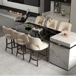 Six bar stools, counter height upholstered bar stools, modern stools with wooden legs for kitchen, dining island, bar, beige color$320Rialto, CA