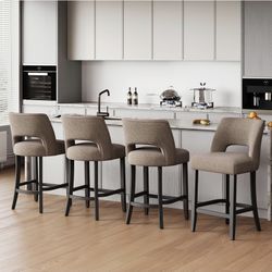 Four Countertop Height Bar Stools, Upholstered Bar Stools with Wooden Legs, Modern Stools with Backrest for Kitchen Island and Bar, Brown color$230Rialto, CA