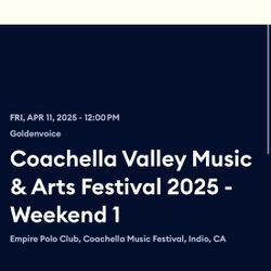 GA Weekend 1 Coachella Tickets + Camping Pass$1,500San Diego, CA