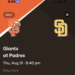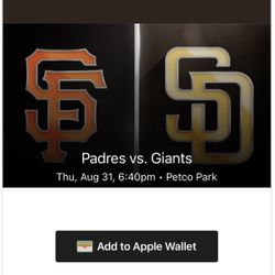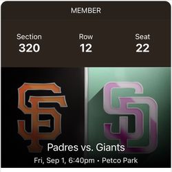 2 Tickets Padres v Giants 8/31$80Chula Vista, CA