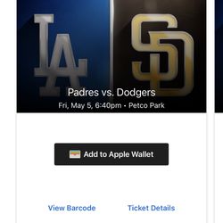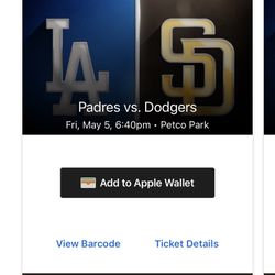 Padres vs Dodgers Friday 5/5$140San Diego, CA