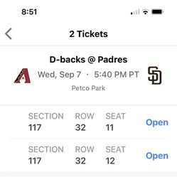(2) Tickets - Padres v Diamondbacks 9/6$80San Diego, CA
