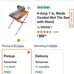 7 IN. TABLE TOP WET TILE Saw $160San Diego, CA