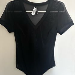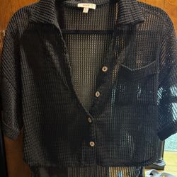 Black Net/knit Short Sleeve Button-up Top Size Medium $12El Cajon, CA