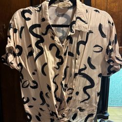 Button-up Short Sleeved Blouse Tan & Black Size Large $6El Cajon, CA