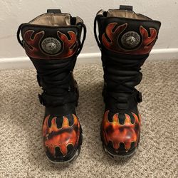 New Rock 591-S1 Red Flame Metal Black Leather Heavy Punk Gothic Boots Sz 40$185San Diego, CA