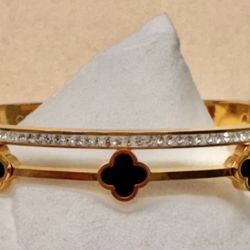 Gold Double Row “Clover & Pave CZ” Hinged Bangle Bracelet$15La Mesa, CA