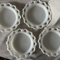 Milk Glass Anchor Hocking 1950’s Lace Edge Plates - set of 4$30San Diego, CA
