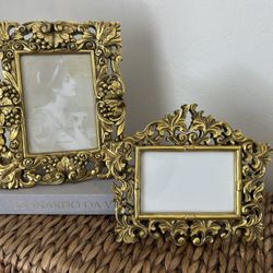 Vintage Lot 2 Wood Carved Ornate Antique style Gilt Wood Gold Brass color Table top Frames Collectible Regency French Style $35San Diego, CA