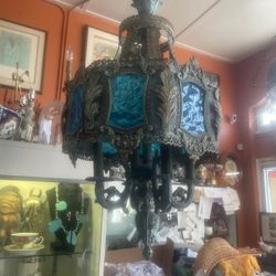 Antique Blue Stained Glass Chandelier Swag Lamp Light $300La Mesa, CA