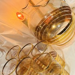Antique Fine Art Clear Glass Pitcher and 6 Glasses Original Vintage Tall Gold Striped Deco Style Artist Artisan Decor HILLCREST / UNIVERSITY HEIGHTS$99San Diego, CA