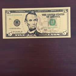 24k Gold Foil $5 Banknote $5San Diego, CA