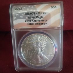 2011 American Silver Eagle MS70 ANACS 25th Anniversary Perfect Coin.Very Nice$135Lincoln Acres, CA