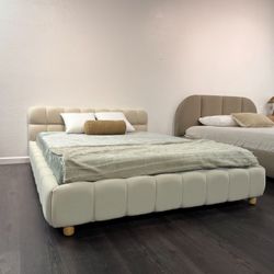 Modern Curved Headboard Vintage Style Low Platform Upholstered Bed frame In Tan Beige $395El Cajon, CA
