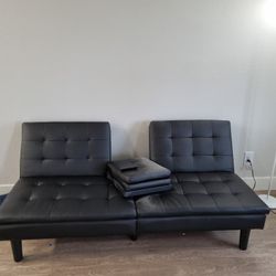 Brand New Black Faux Leather Convertible Sofa