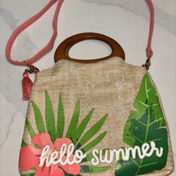 Disney Parks "Hello Summer" Tropical Mickey Mouse Raffia Crossbody Tote Bag with Wooden Handle - New without tags$40Chula Vista, CA