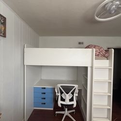 Twin Loft Bed with Desk, Storage Drawers, Closet & Open Shelves - White/Blue- IKEA SMASTAD style $500San Diego, CA