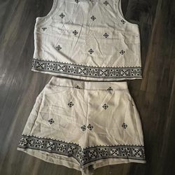 Top and Shorts Set Tan and Black Patterned Women’s Size Large$30San Diego, CA