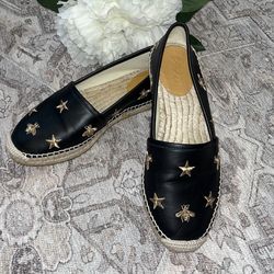 Gucci Black Gold Leather Bee Star Espadrilles 37.5$220Chula Vista, CA