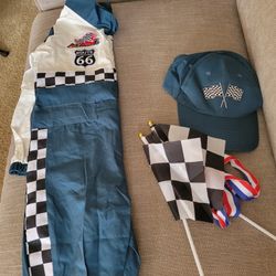 Race Car Driver Costume Boy Girl,Kid Racer Jumpsuit with Car Cap,Toddler Racing Costume Halloween with Accessories