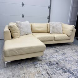 (Sold) Natuzzi Italian Leather Sectional Sofa with Chaise in Ivory White$750San Diego, CA