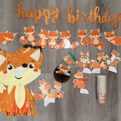 Fox Birthday Party Decoration (2x20” balloons, cupcakes toppers, centerpieces, cups, Happy Birthday sign)$15Roseville, CA