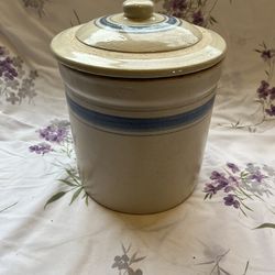 Vintage Beige with Blue Stripes Stoneware Lidded Jar/Container$35Placerville, CA